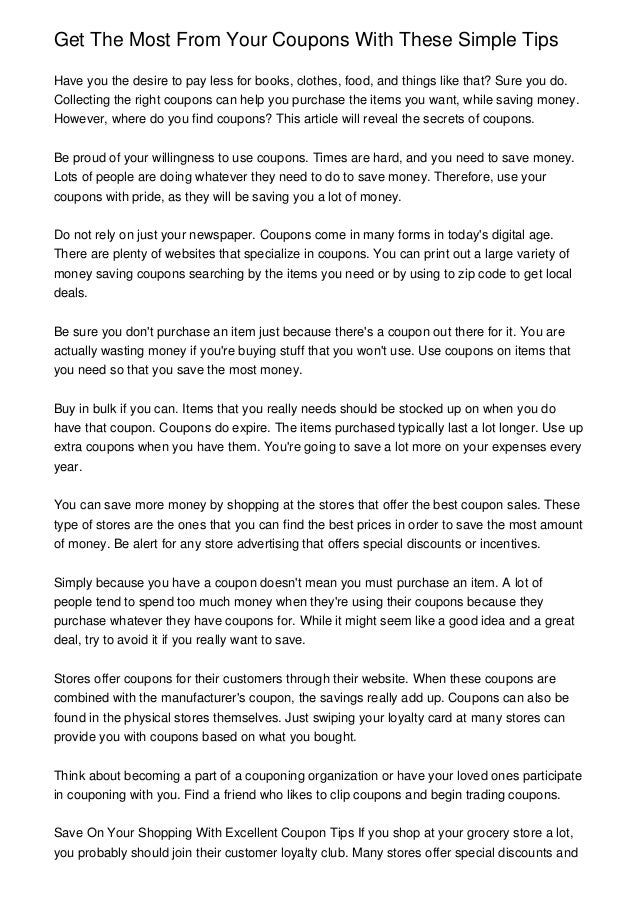 Couponing Tips for Beginners: 3 Simple Steps - Sunday Coupon Inserts Online coupon databases Sunday newspaper Manufacturer websites Store websites Cashback apps Step 2: Get Organized Organizing is one of the best couponing tips for beginners. It may seem trivial, but keeping things orderly will let you quick-draw the right coupon at checkout, or plan your shopping trip well before you leave the house.