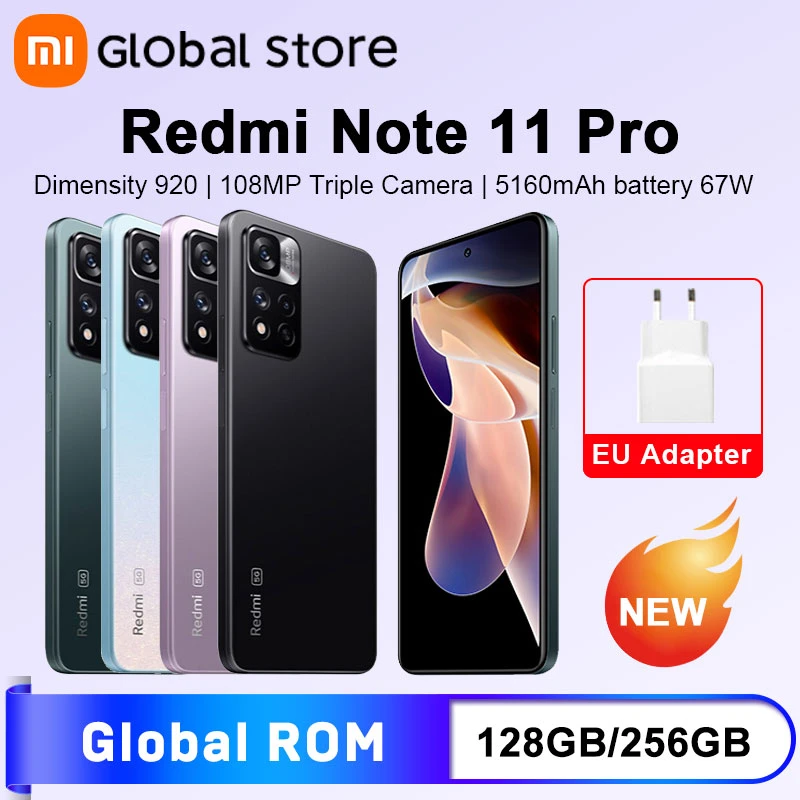 Global ROM Xiaomi Redmi Note 11 Pro 128GB/256GB Smartphone Dimensity 920 5160mAh 67W Fast Charge 6.67'' AMOLED 108MP Camera