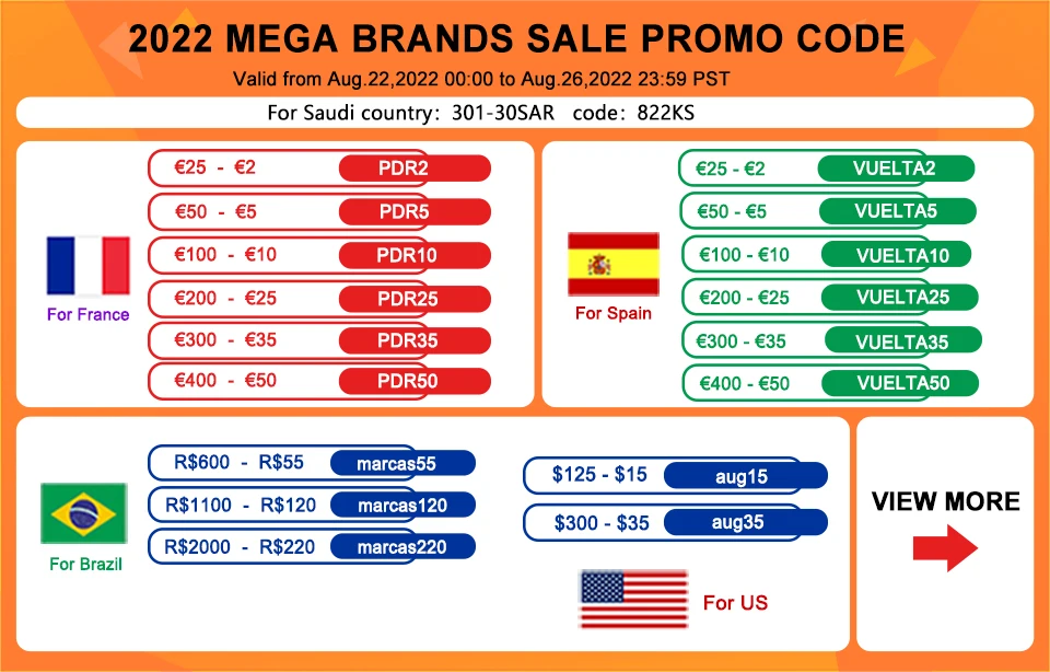 Promo code For 2022 Mega Brands Sale ! Shop with promo code to save money, Limited quantity, first come first served