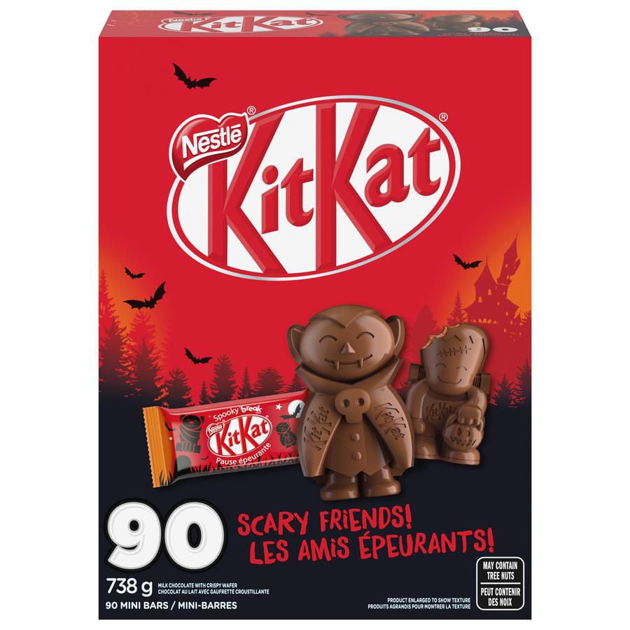 NESTLÉ KITKAT Haunted House Halloween Kit 834 g | Walmart Canada Invite your favourite girls and ghosts, and boys and ghouls over to help you build, then eat, this spooky NESTLÉ KITKAT Haunted House Halloween Kit (834 g). Kit includes a mix of KITKAT milk chocolate and dark chocolate bars, as well as SMARTIES and decoration ingredients. There are also 4 KITKAT Scary Friends in fun Halloween shapes, like a ...